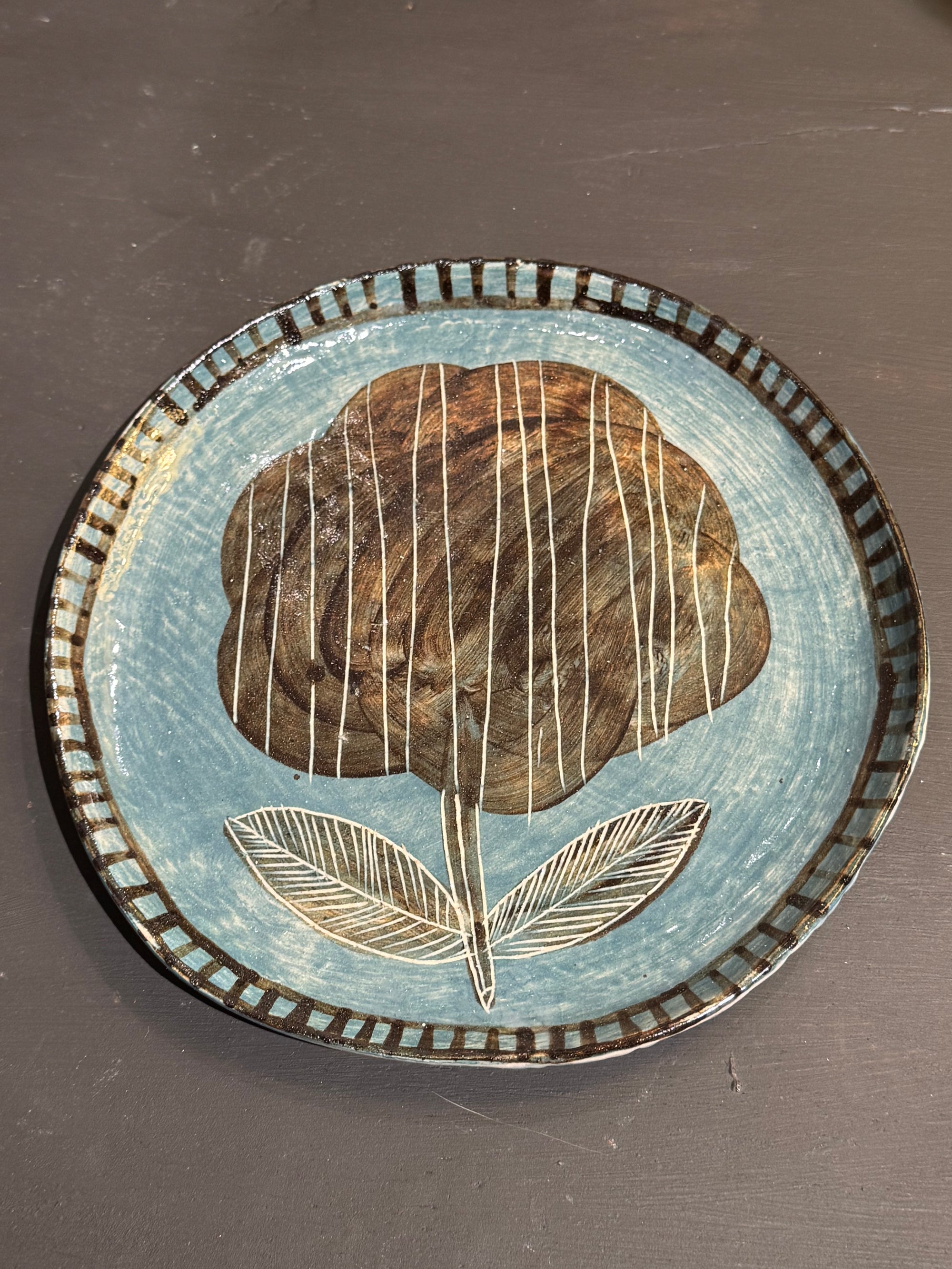 Assiette ronde fleur bleue Vincent Verde