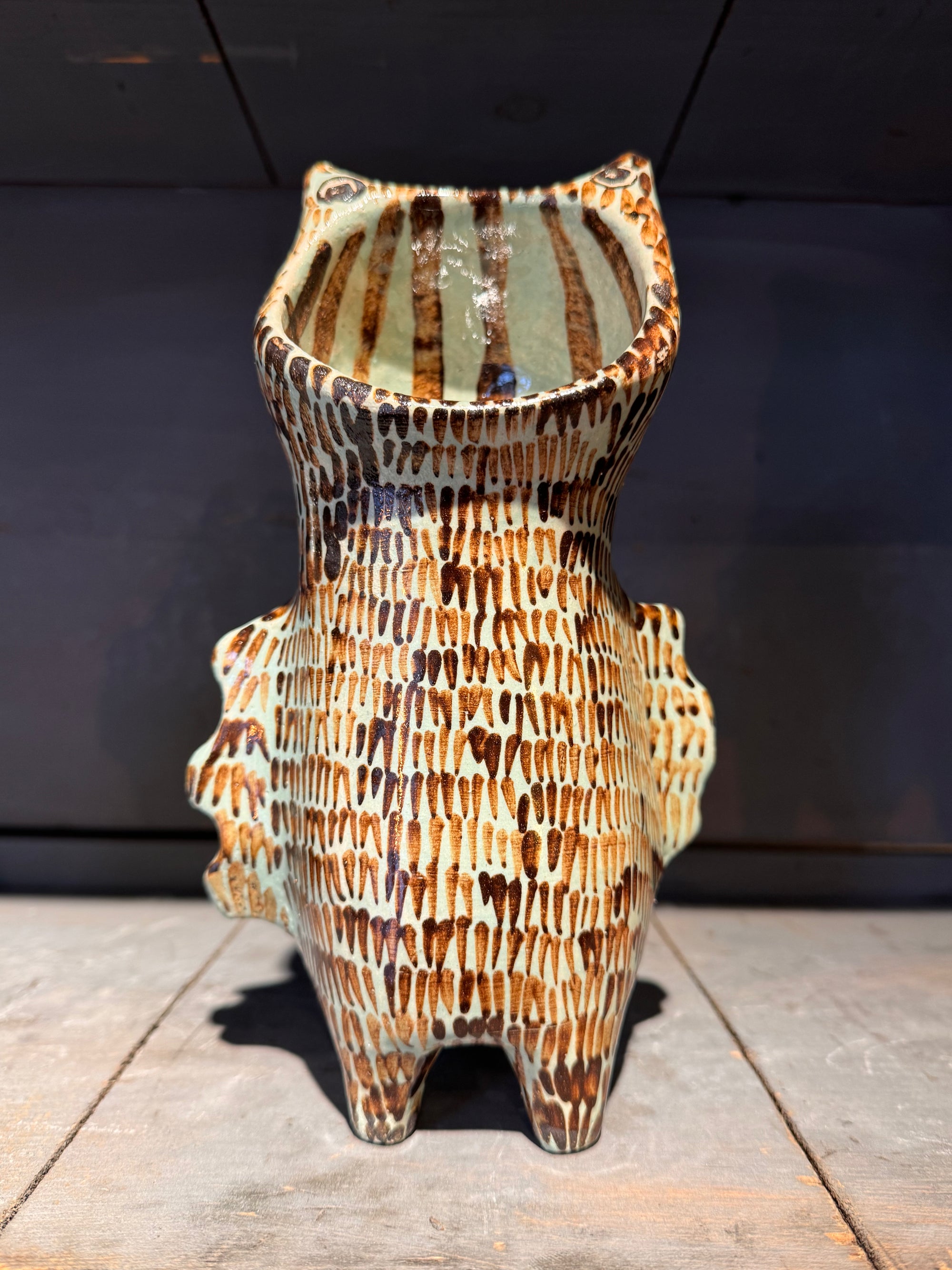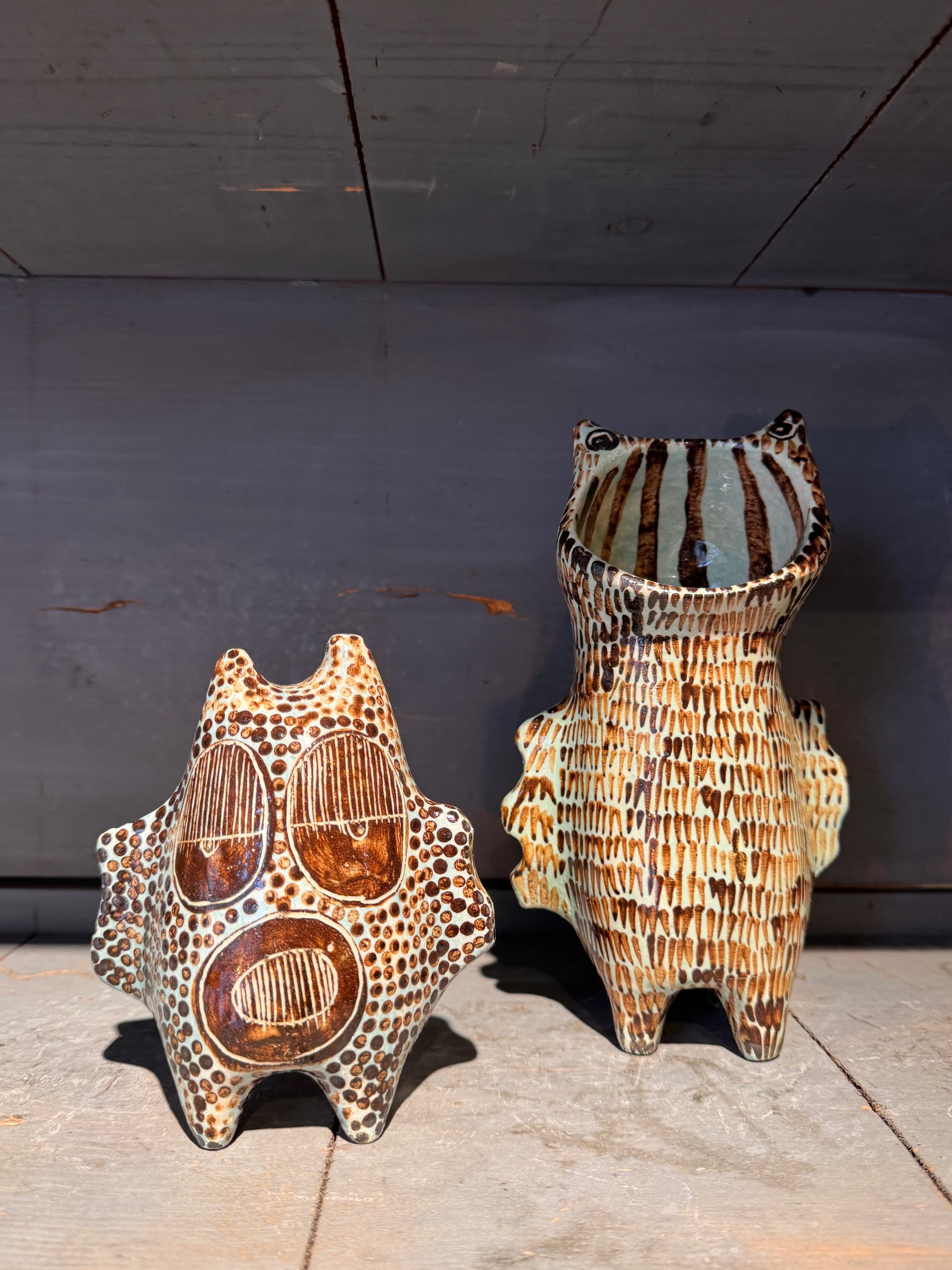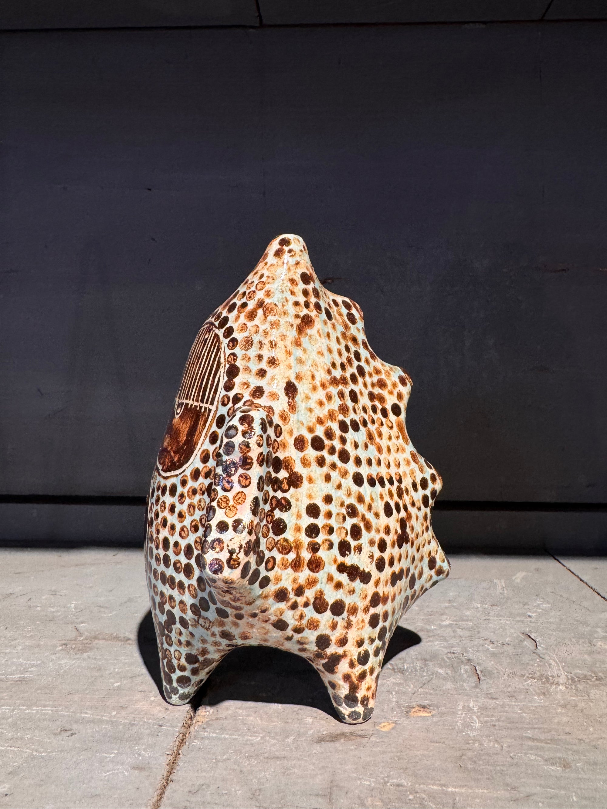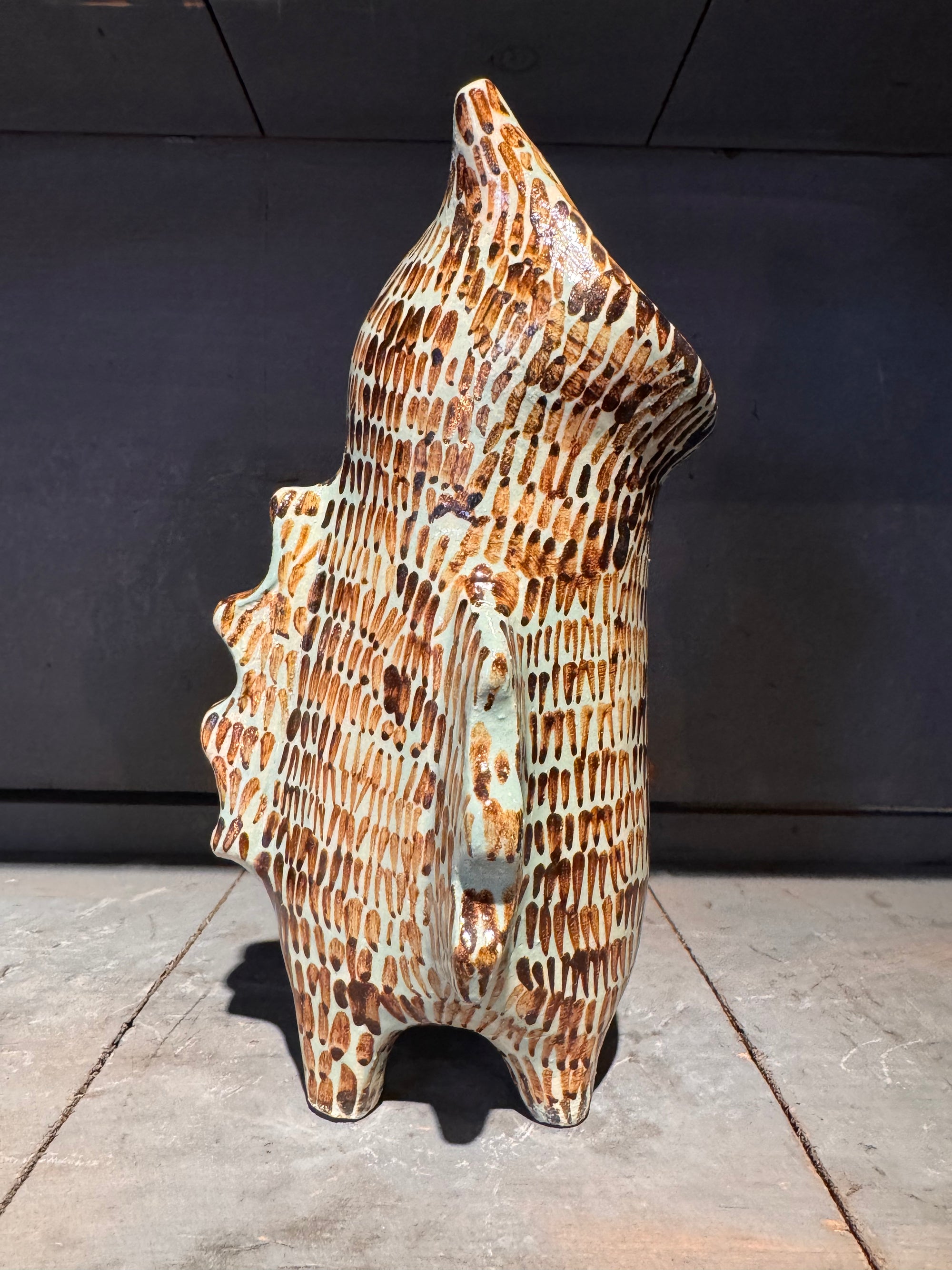 Sculpture Chat hurlant celadon Vincent Verde