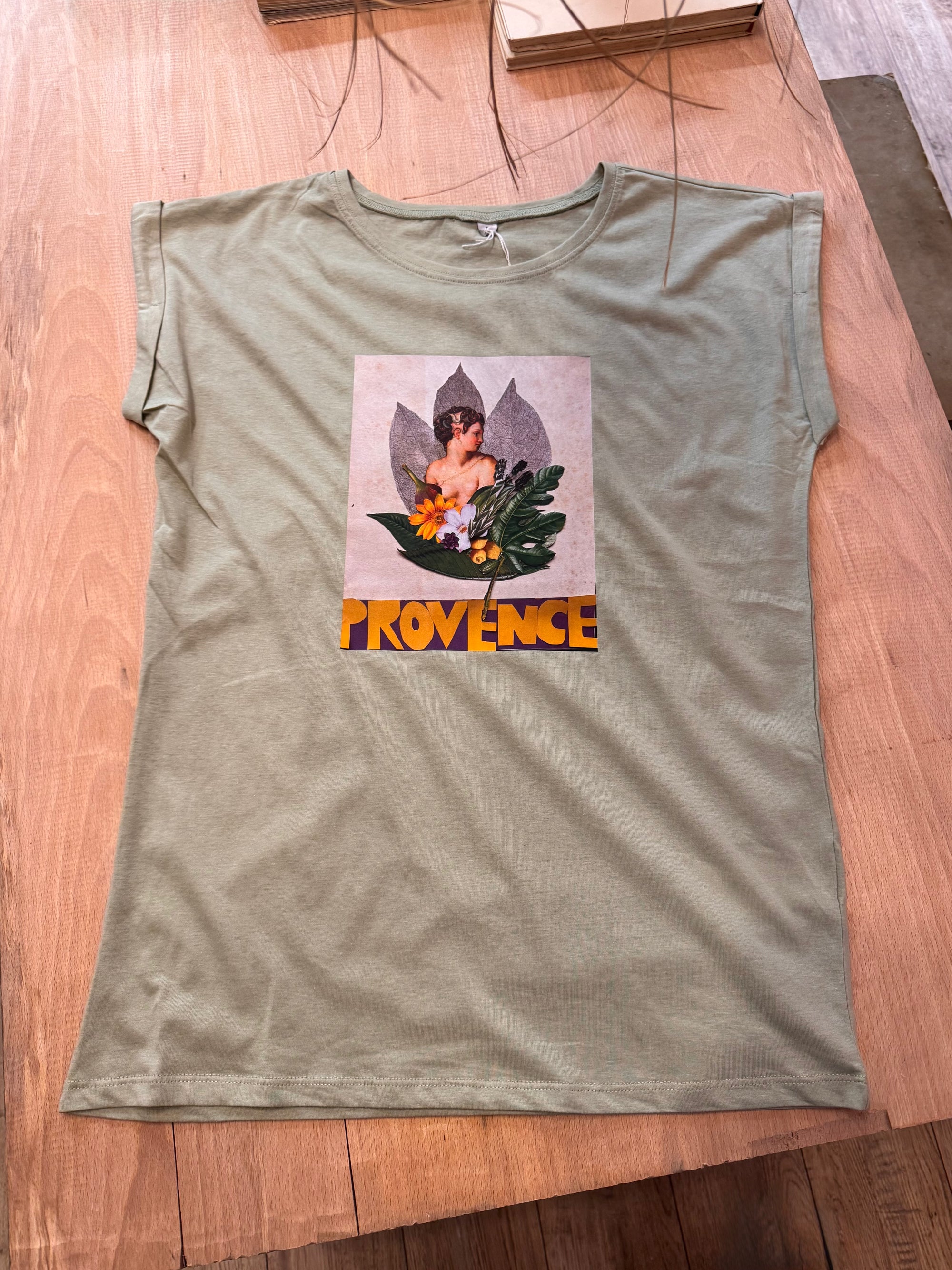 T-shirt manches retournées sauge