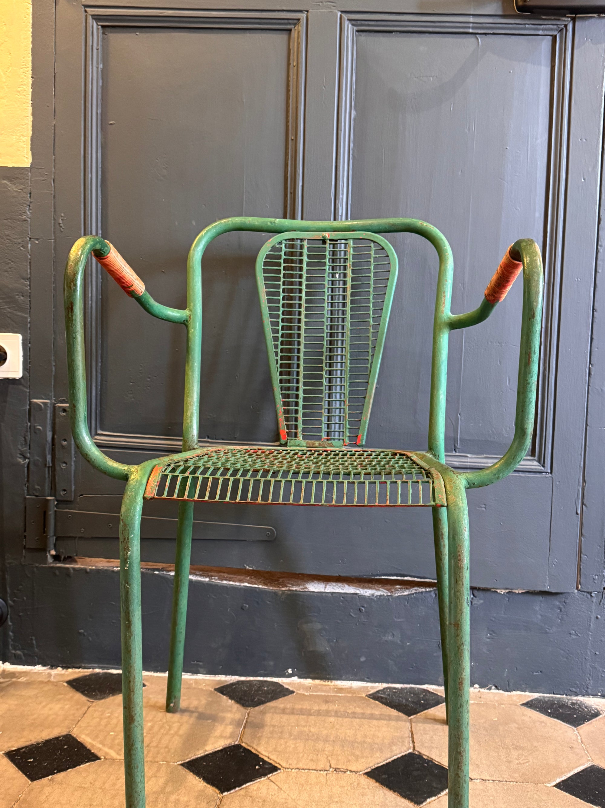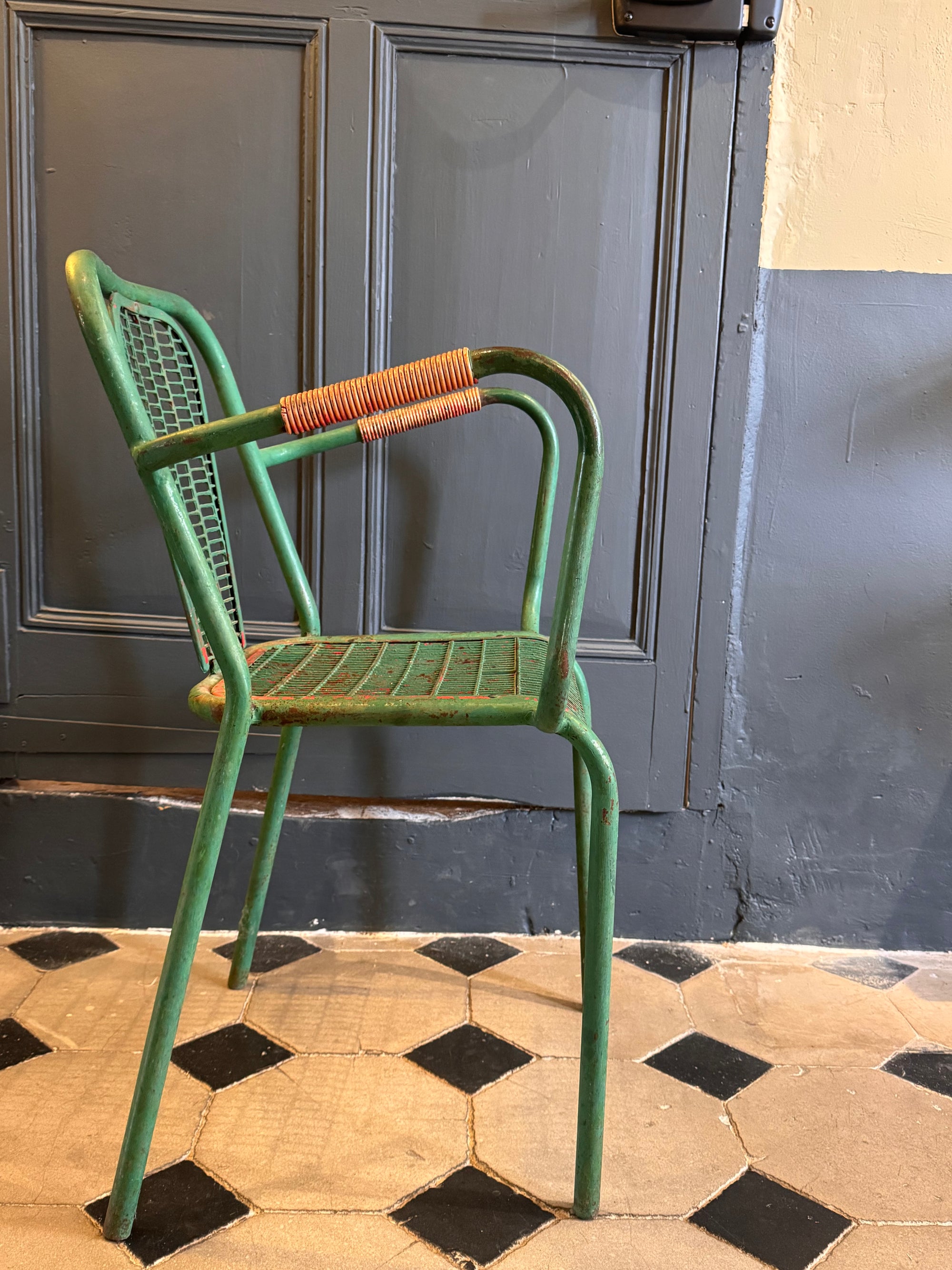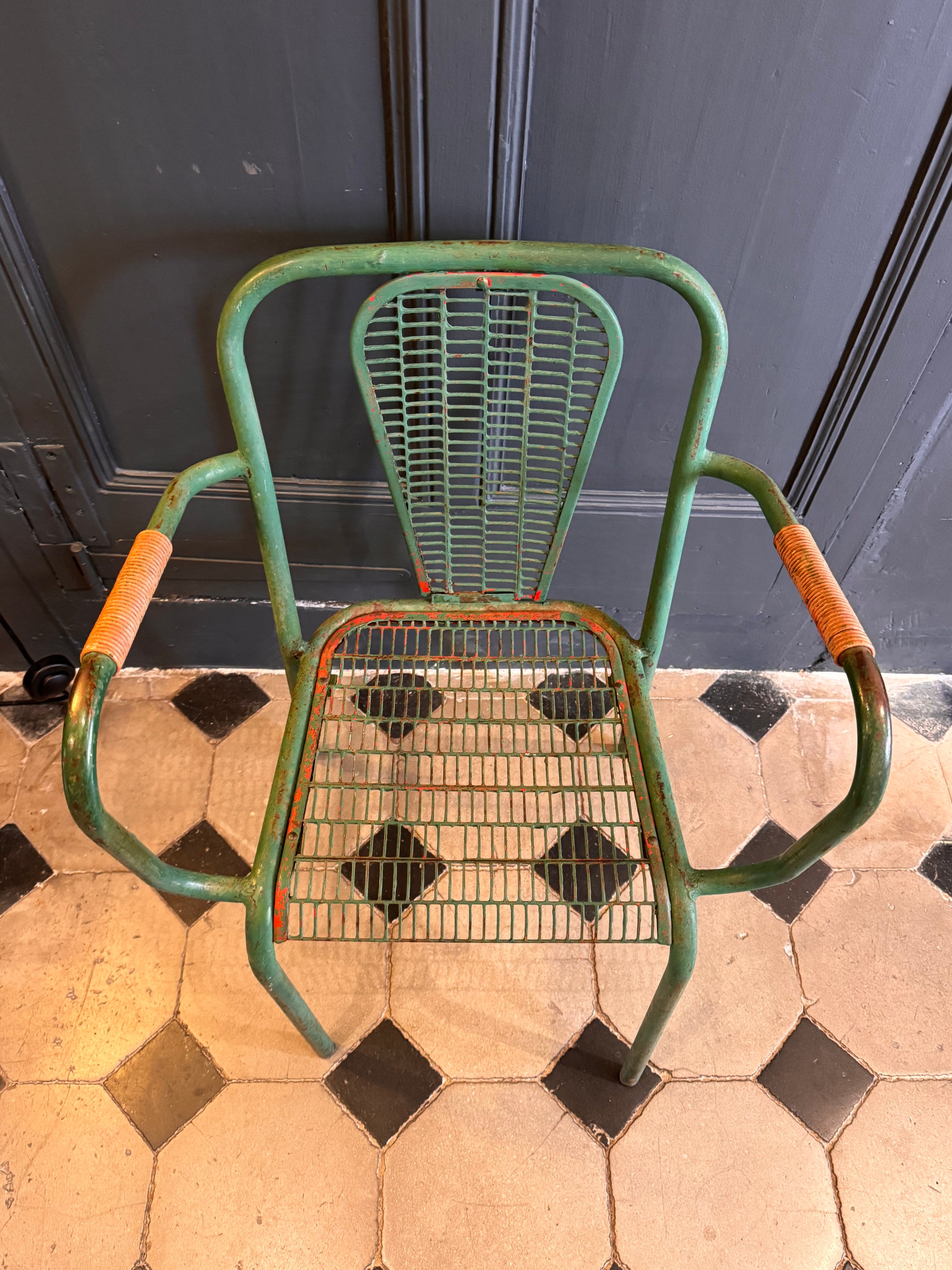 Paire de fauteuils metal vert